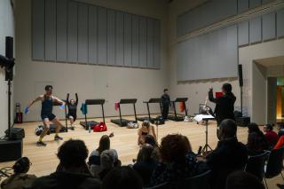Ouverture is an a cappella performance piece for a double quintet — five singers and five treadmills. Set in a threshold-like space-time, the work explores the performative tension that precedes the event — both of the show and of life itself. The preparations and rituals of opera intertwine with those of sports and wellness practices, in search of a wellbeing, or a form, that is always still to come. Reality and fiction thus converge in the voices of the singer-performers, questioning the horizons, escape routes, and gazes that shape contemporary life.