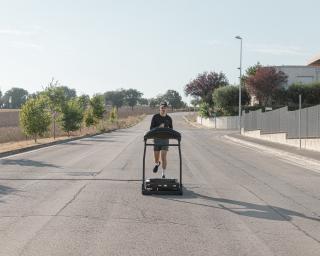Fuga è una performance basata sulla corsa, che diventa metafora di una paradossale condizione esistenziale: quella di chi si muove pur restando fermo, in fuga da sé e dalle proprie contingenze, in cerca di un benessere sempre a venire. Una sessione di allenamento su tapis roulant è l’occasione per una deriva immaginale, su sonorità provenienti dalla musica barocca e dal mondo dell’intrattenimento, capace di riscrivere il senso stesso della pratica sportiva. Con questo progetto il duo artistico Palermo/Petrosino continua la propria ricerca sulla natura dell’atto performativo a partire dal quotidiano, dando vita a una coreografia minima del gesto concreto, al confine tra realtà e finzione